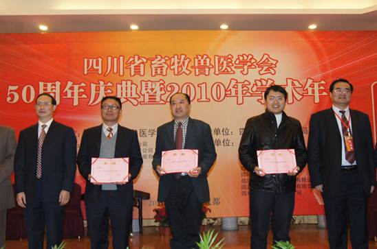 您當前位置: 網(wǎng)站首頁(yè) > 新聞媒體 > 畜科動(dòng)態(tài)四川省畜牧獸醫學(xué)會(huì )50年慶典暨2010年學(xué)術(shù)會(huì )于12月2日至4日在成都金河賓館隆重舉行。大會(huì )評選并頒發(fā)了首屆四川省畜牧獸醫科技創(chuàng )新優(yōu)秀團隊獎和優(yōu)秀個(gè)人獎,其中,四川省畜科飼料有限公司榮獲“四川畜牧獸醫科技創(chuàng )新優(yōu)秀企業(yè)”;鄺聲耀研究員榮獲“四川畜牧獸醫科技創(chuàng )新貢獻獎”。