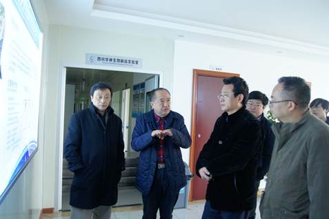您當前位置: 網(wǎng)站首頁(yè) > 新聞媒體 > 畜科動(dòng)態(tài)2月7日,省科技廳副廳長(cháng)景世剛、基礎處處長(cháng)張雄、農村處吳斌處長(cháng)、游曉峰副處長(cháng)一行,在省畜科院院長(cháng)蔣小松、院長(cháng)助理鄺聲耀、劉相安研究員等陪同下,先后調研畜科大邑研發(fā)生產(chǎn)中心、畜科華神生物,景廳長(cháng)對畜科業(yè)績(jì)與產(chǎn)學(xué)研合作給予了充分肯定和高度評價(jià),對華神生物高大上的實(shí)驗研究中心與高精尖的產(chǎn)品給予了高度贊揚,強調加大產(chǎn)品研發(fā)與成果產(chǎn)業(yè)化力度!