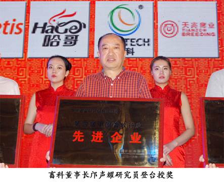 經(jīng)農業(yè)部批準,中國畜牧業(yè)協(xié)會(huì )于2016年5月18日至20日在沈陽(yáng)召開(kāi)2016中國畜牧業(yè)博覽會(huì )暨中國國際畜牧業(yè)展覽會(huì )之際,隆重舉行了盛大的中國畜牧行業(yè)表彰頒獎大會(huì ),畜科榮獲“中國畜牧行業(yè)先進(jìn)企業(yè)”,全國人大副委員長(cháng)、原農業(yè)部副部長(cháng)、中國畜牧業(yè)協(xié)會(huì )張寶文會(huì )長(cháng),農業(yè)部總畜牧師王智才,全國畜牧總站李希榮站長(cháng),全國畜牧總站黨委書(shū)記何新天等國家部省領(lǐng)導人為獲獎企業(yè)授證頒獎,畜科董事長(cháng)鄺聲耀研究員登臺授獎獲證。