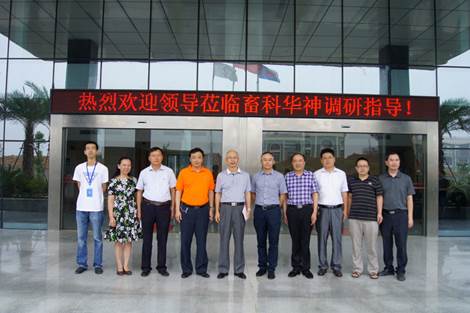 2015年8月12日,在四川省畜牧科學(xué)院蔣小松院長(cháng),四川科創(chuàng )飼料產(chǎn)業(yè)技術(shù)研究院理事長(cháng)、華神生物公司董事長(cháng)鄺聲耀等人的陪同下,國家科技部農村司蔣丹平副司長(cháng)、許增泰處長(cháng)、科技部農村開(kāi)發(fā)中心盧兵友處長(cháng)、四川省科技廳副廳長(cháng)韓忠成、副處長(cháng)游曉峰、四川省農科院副院長(cháng)任光俊、川農大賈剛教授一行蒞臨成都雙流西航港經(jīng)濟開(kāi)發(fā)區的四川科創(chuàng )飼料產(chǎn)業(yè)技術(shù)研究院和四川華神獸用生物制品有限公司進(jìn)行調研指導。