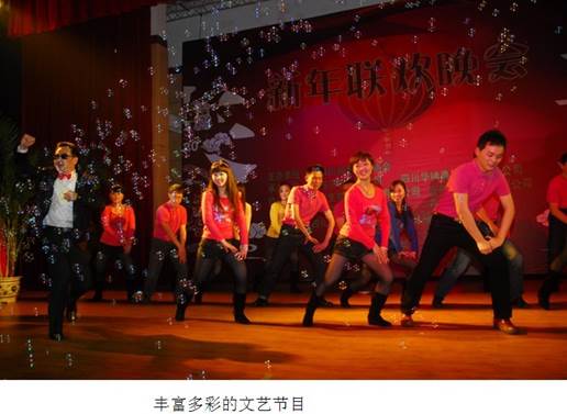 晚上,舉行了盛大的新年聯(lián)歡晚會(huì )。省畜牧業(yè)協(xié)會(huì )會(huì )長(cháng)刁運華熱情洋溢的新年賀詞使大家精神振奮,成都電視臺主持人張睿攜成都市藝術(shù)劇院和成都市交響樂(lè )團的演員高雅、激情的節目博得大家陣陣掌聲,畜科公司員工們表演的詩(shī)朗誦《意氣風(fēng)發(fā)的畜科人》和舞蹈《畜科style》,展示了畜牧人的文藝才能和精神風(fēng)貌,將晚會(huì )推向了高潮。